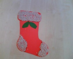 Laat de kinderen de sok kleuren, en en de bovenste rand insmeren met lijm.