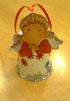 Maak aan de bovenkant van het bekertje een lintje , zodat je het engeltje op kunt hangen.