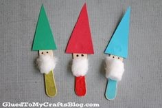 Maak van ijslolliestokjes je eigen kabouters. Puntje papier voor de mutsjes. 2 stipjes voor de ogen.